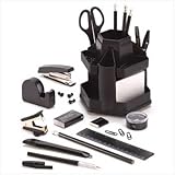 Set up an efficient office in seconds with this executive starter set! 68-piece kit includes every essential for productivity, all in a space-saving storage caddy. Absolutely indispensable for any busy businessperson! Set includes: ruler, pencils, stapler, staple remover, staple wires, eraser, ball pen, tape, pad, blade, pencil sharpener, scissors, paper clips, push pins, and rotating caddy. Weight 1.2 lbs. Plastic, wood, metal, and paper. 6" x 5 1/4" x 6" high. Set.../ Office In A Box Caddy Pen Tape Ruler Stapler Scissors / Desk Accessories